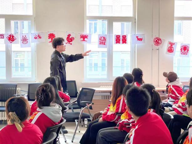 beat365在线体育89期1期队辅导员田建林老师以中国民间传统手工艺术-剪纸为切入点,为同学们带来了一堂“传统剪纸与生活的艺术”的文化讲座。讲座以“纸上苍生”剪纸视频拉开帷幕,通过介绍剪纸的起源和南北方剪纸文化差异,让同学深入了解剪纸作品背后的深刻文化内涵。在讲解了剪纸的入剪方法、剪纸图形的组合方案、典型汉字“春”和“喜”的剪法之后,同学们自己动手,设计并完成自己的剪纸作品,切身感受中华传统文化的博大精深。