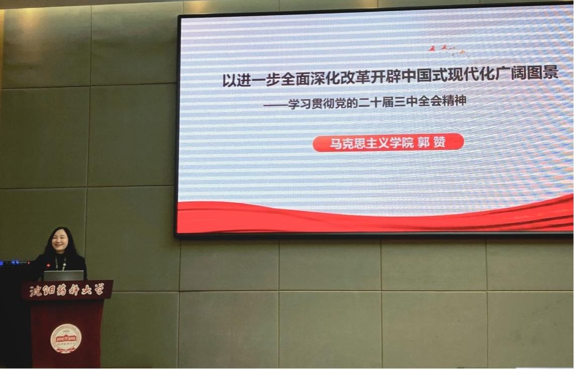11月6日下午,beat365在线体育在图书馆国为报告厅举办党的二十届三中全会精神专题辅导报告会,本次报告由辽宁省学习贯彻党的二十届三中全会精神高校宣讲团成员、公司马克思主义公司副经理郭赞教授主讲。beat365在线体育党委书记杨奇志、副经理赵云丽、副经理熊志立、党委副书记于鹏宇与公司200余名师生党员参加会议。会议由beat365在线体育党委副书记于鹏宇主持。