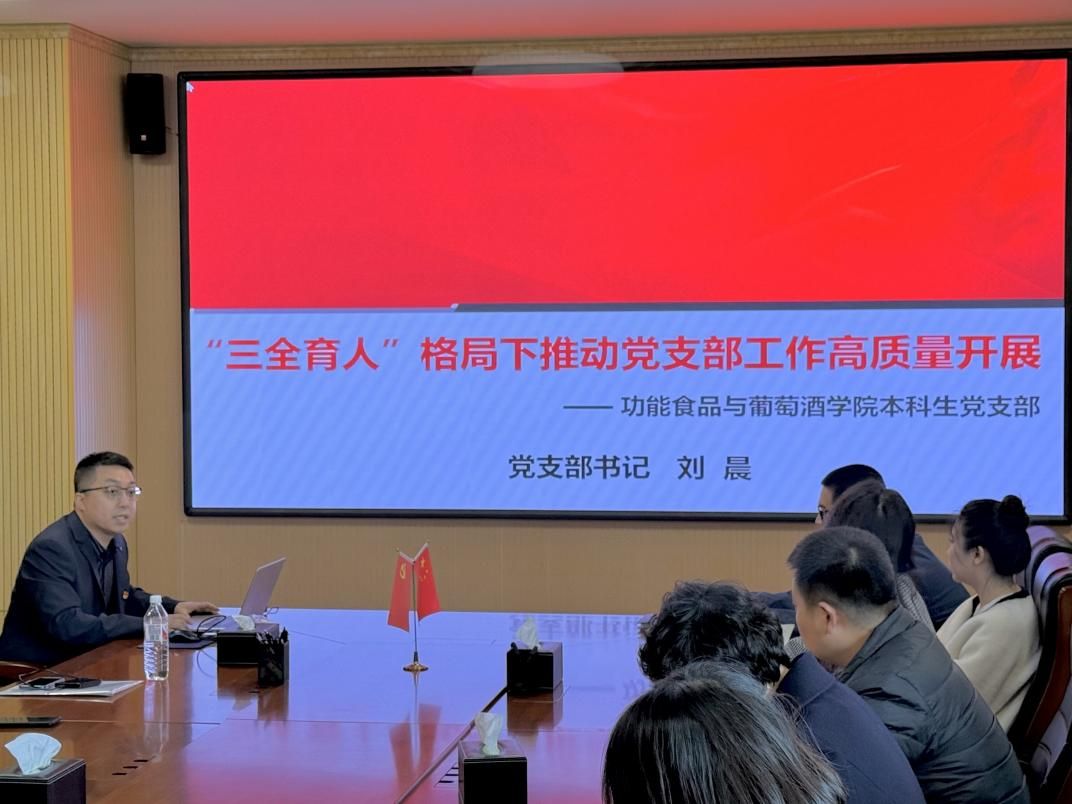 公司邀请功能食品与葡萄酒公司本科生党支部书记刘晨做工作交流分享,刘晨老师以“‘三全育人’格局下推动党支部工作高质量开展”为题,详细介绍了功能食品与葡萄酒公司本科生党支部创建辽宁省第三批党建工作样板支部的工作经验,他从支部建设的“1147”工作思路入手,聚焦“七个有力”,重点分享了支部在党员培养、规范建设、作用发挥方面的具体做法,全面、系统地介绍了他在员工党支部建设中的创新思考和宝贵经验,为全体参会老师今后如何开展员工党建工作提供了宝贵的启示和借鉴。