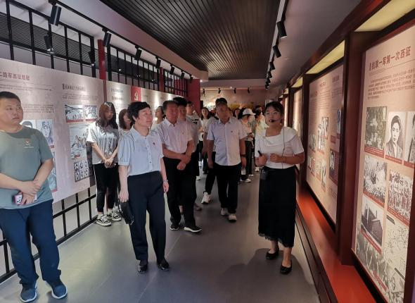 第三站,来到大甸子镇当铺屯村,全体党员共同参观了东北抗联第一军西征史实陈列馆,跟随者讲解员,党员们依次参观了辽北沦陷、义勇风云、还我河山、夺取胜利、光耀千秋等陈列馆展区,切身体会到了抗联时期的艰苦条件,感受到了在生与死、血与火磨炼中铸就的东北抗联精神,并在党旗下重温入党誓词。