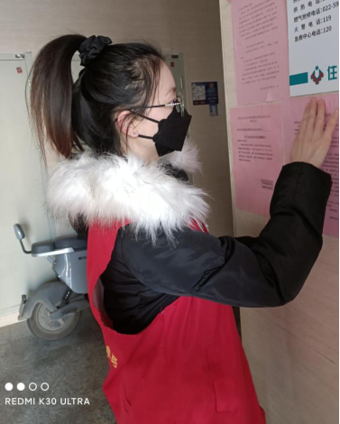 本科第一党支部预备党员曲彤积极参与到了铁岭经济技术开发区盛峰佳苑社区的疫情防控工作中。从小年开始连续三天准时到防控点义务执勤,并在枫岭怡然小区开展了挨家挨户的走访活动,调查居民的核酸接种情况。