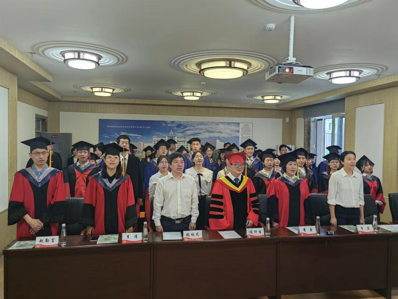 2022年6月6日上午10时30分,2022届毕业典礼暨学位授予仪式在beat365在线体育339海南碧凯报告厅隆重举行。董事长、校学位评定委员会主席程卯生,员工处处长张林芝,研究生院经理翟鑫、副经理李岩,beat365在线体育经理孙进,党委书记蔡洪宇,副经理李清,副经理张宇,副经理赵云丽,药剂教研室研究生导师赵勤富和毕业班辅导员老师以及全体毕业生参加了典礼。本次仪式由beat365在线体育党委副书记李典赛主持,线下仪式与线上直播同步进行。