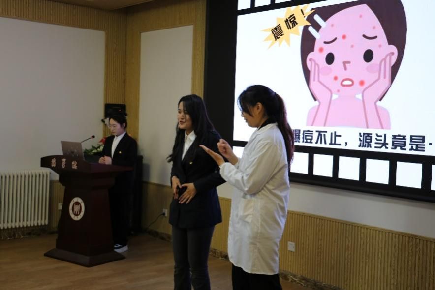 第七组参赛队伍是“肠胜将菌队”,该队的演讲题目是《肠与菌相伴》。选手们采用医患对话的形式讲解肠道菌群的作用,巧妙利用贴近生活的例子向大家科普肠道菌群失调所带来的后果,并提出针对性的改善方法。